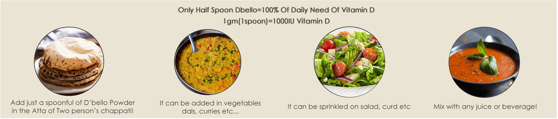 With extensive research, the team has successfully developed natural vitamin D source product called, "D'bello," which is chemical free, 100% vegan, whole food nutrition from vegetable, cost effective and cooking stable. Available in a powder form, D'bello can be added to almost all kinds of Indian foods such as chapatti, dal, sabji, curd, andso on.